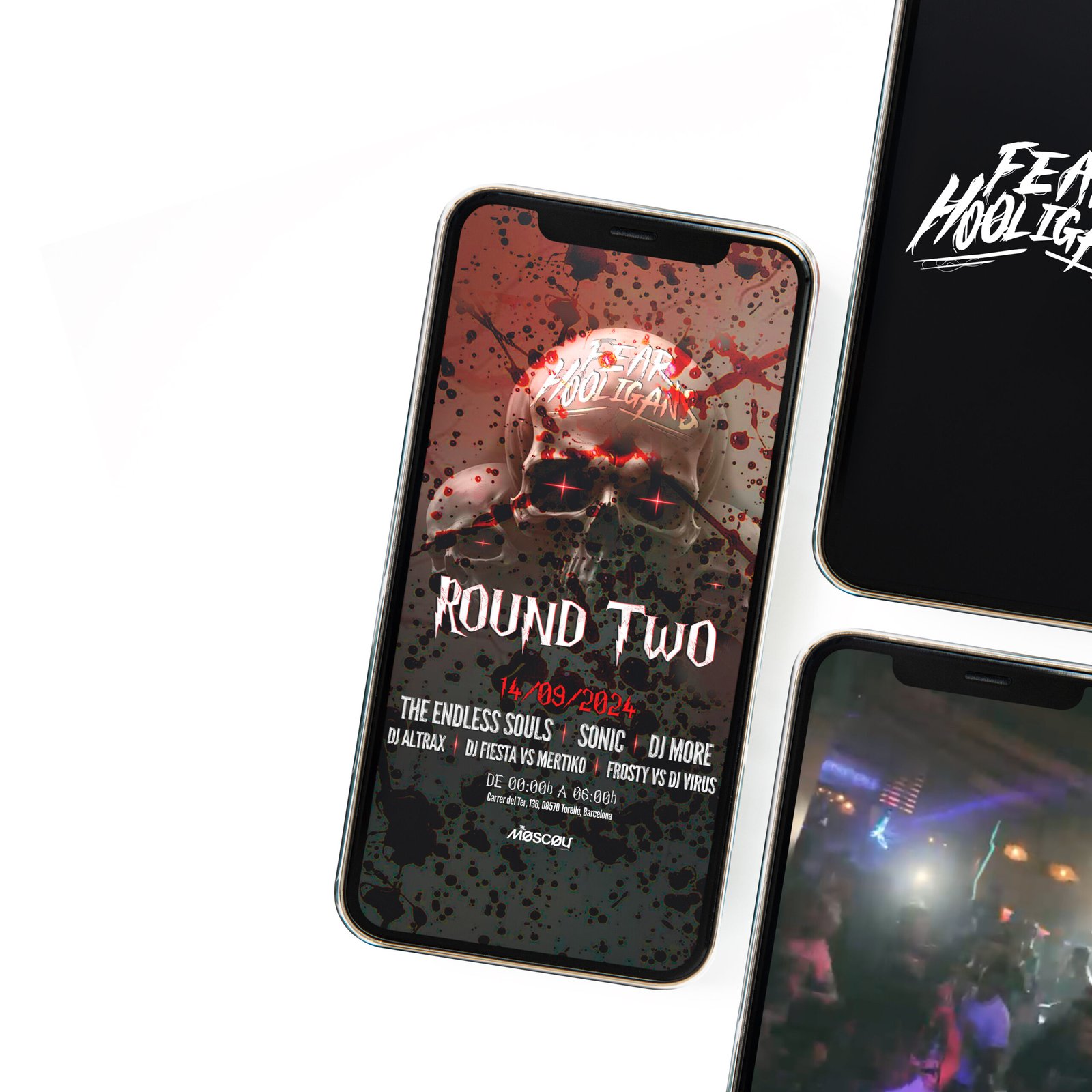 Se trabajó en un diseño que conserva la estética oscura y potente de la marca, potenciando la tipografía imponente y los elementos gráficos asociados al movimiento hardcore. Al mismo tiempo, se añadieron detalles visuales específicos al concepto de la fiesta —colores, texturas y ambientaciones— para diferenciarla y darle un carácter único reforzando la conexión emocional con el público.