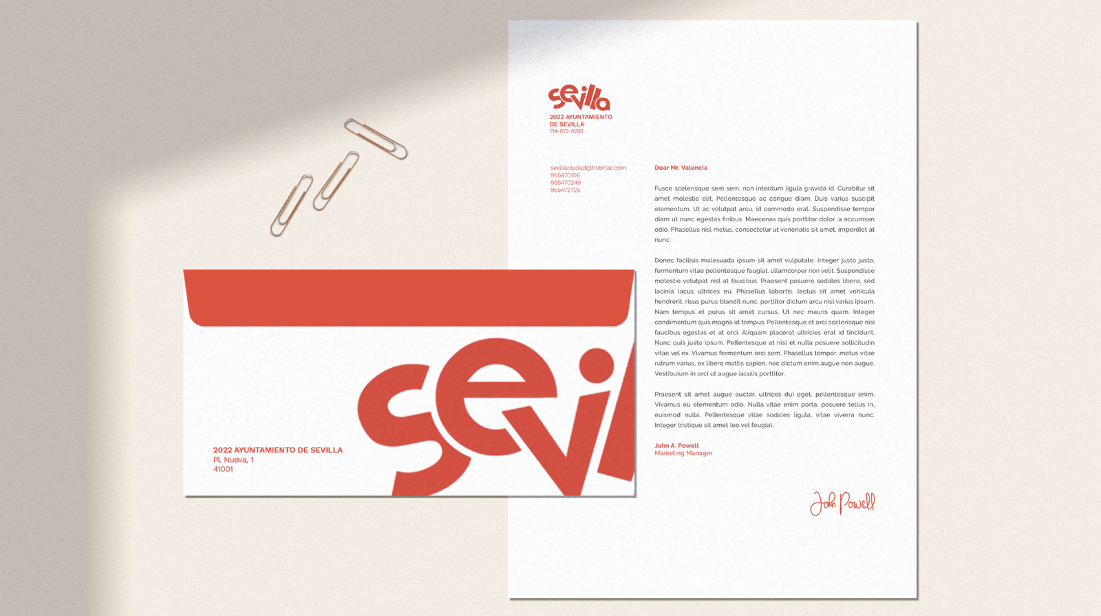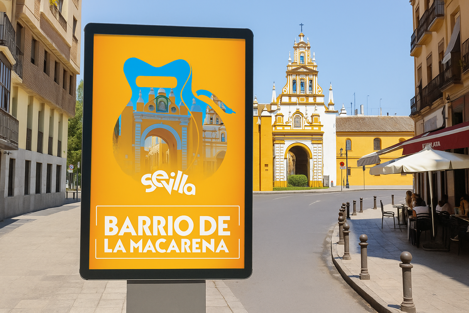 La propuesta de diseño gráfico se centró en un logotipo dinámico y expresivo, construido a partir de tipografías personalizadas que evocan movimiento y ritmo, cualidades muy vinculadas a la identidad sevillana. La elección del color rojo refuerza la pasión y la energía de la ciudad. El sistema visual se completa con piezas gráficas aplicadas a papelería y soportes promocionales, además de una cartelería específica para los barrios, donde se integran elementos icónicos como el abanico, la castañuela, la Giralda o la figura de la sevillana. De este modo, se creó un branding coherente, versátil y representativo que conecta con la tradición sin dejar de proyectar modernidad.